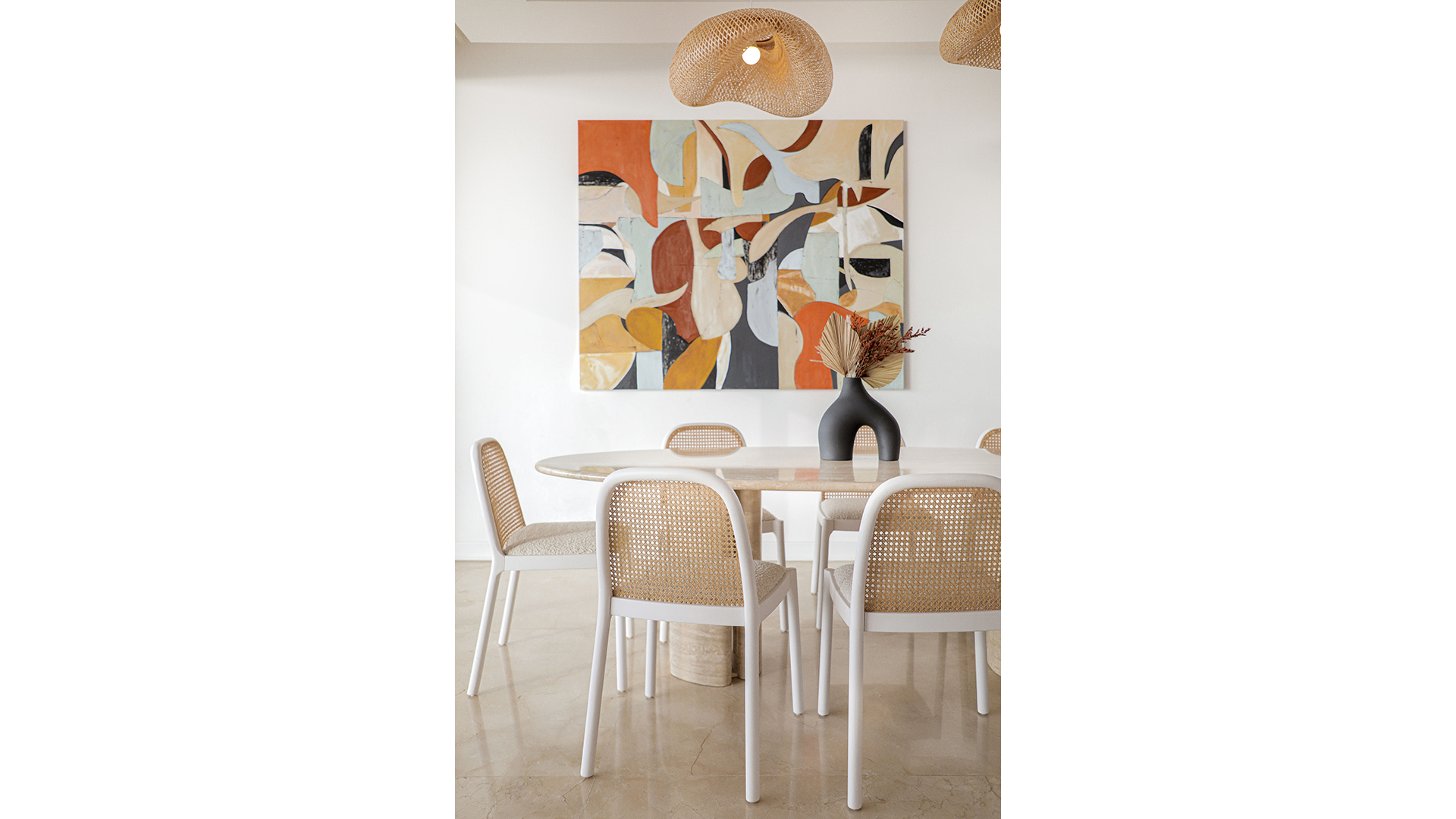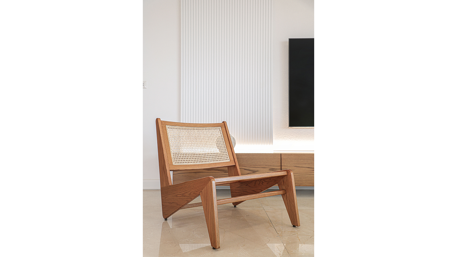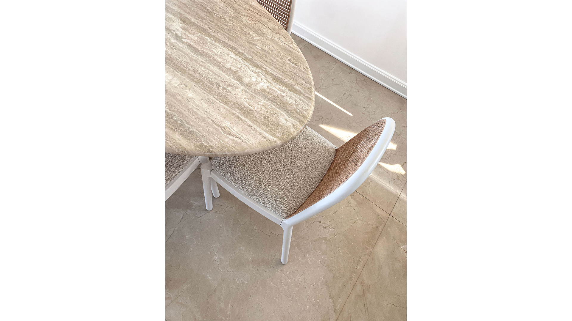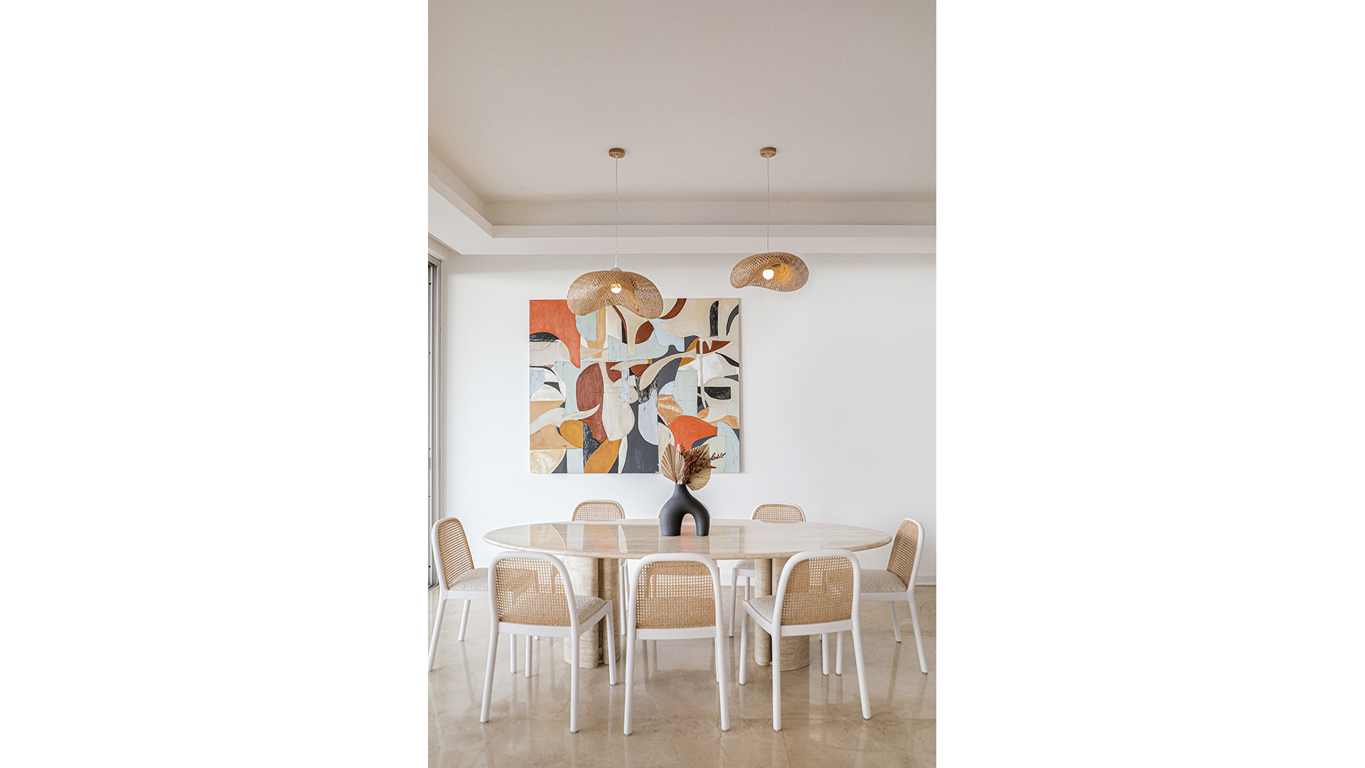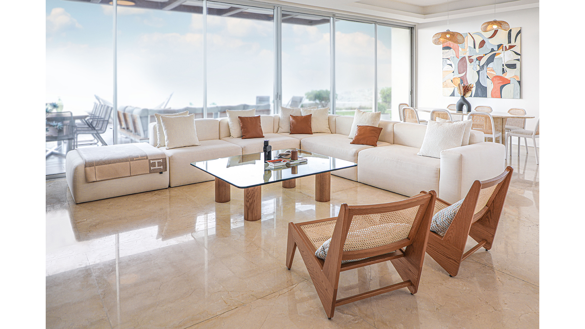 For this Residential Penthouse on the coast of Anfeh, North of Lebanon, we opted for a minimal palette that focuses on neutral earthy materials. The layering of textured paint, oak wood, rattan and travertine marble mixed with white fabrics created a relaxing balance for the user. The beautiful view of the Mediterranean Sea and the trees around it brought in the elements of vibrant colors into the room
