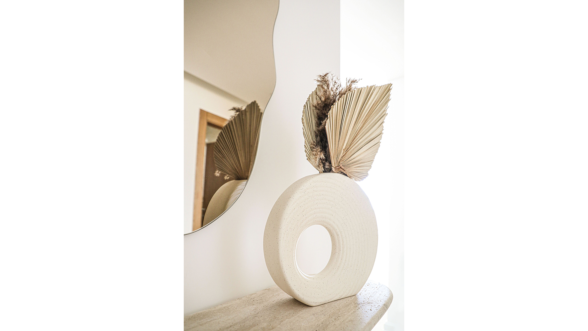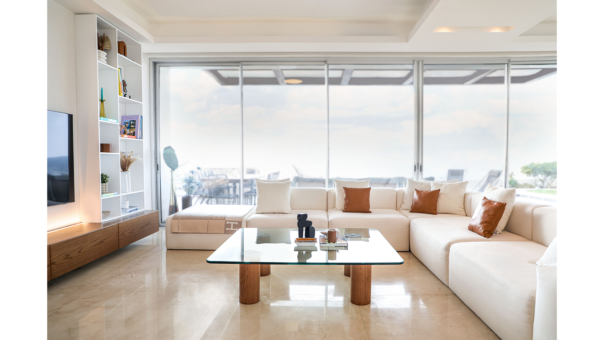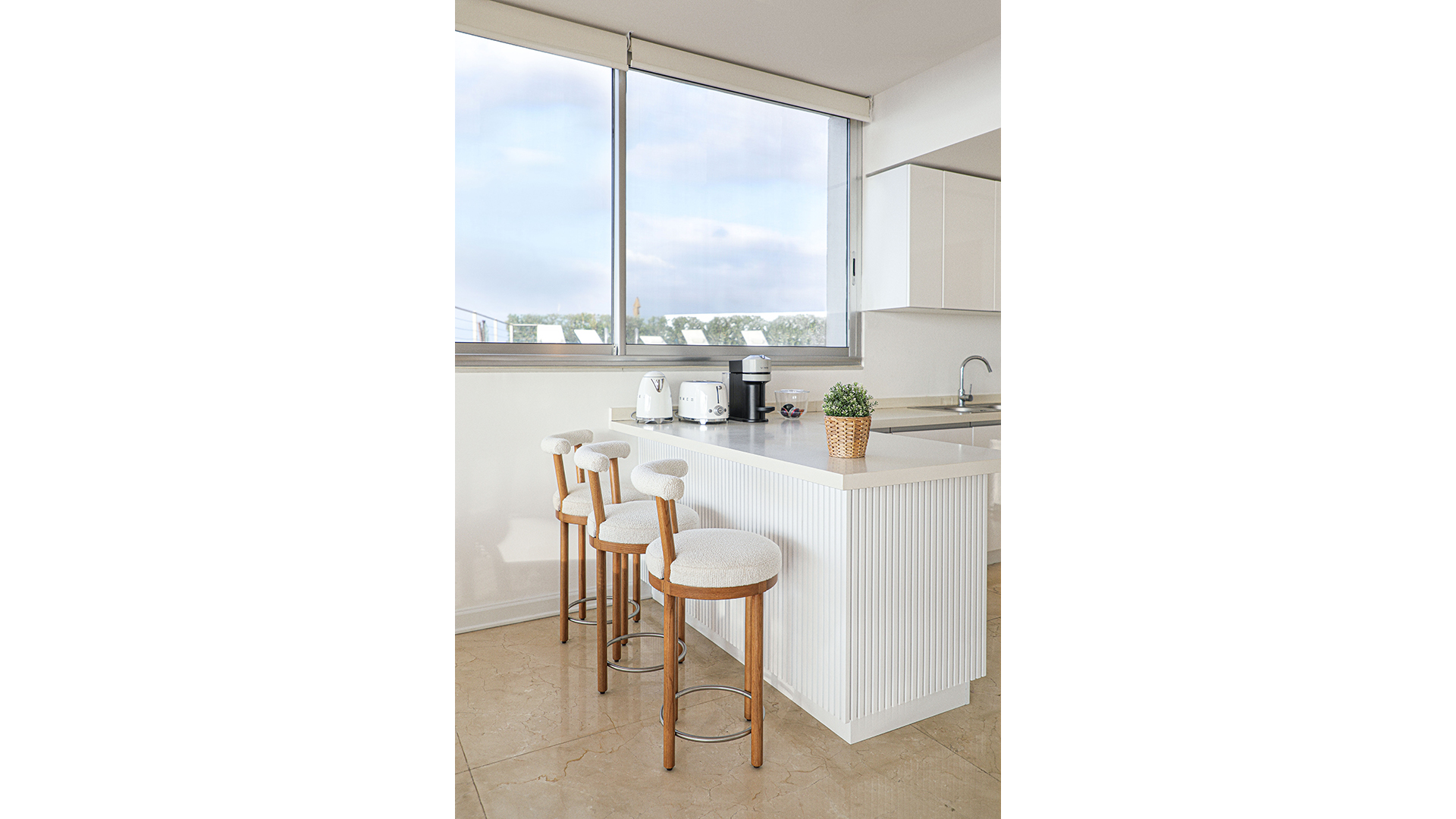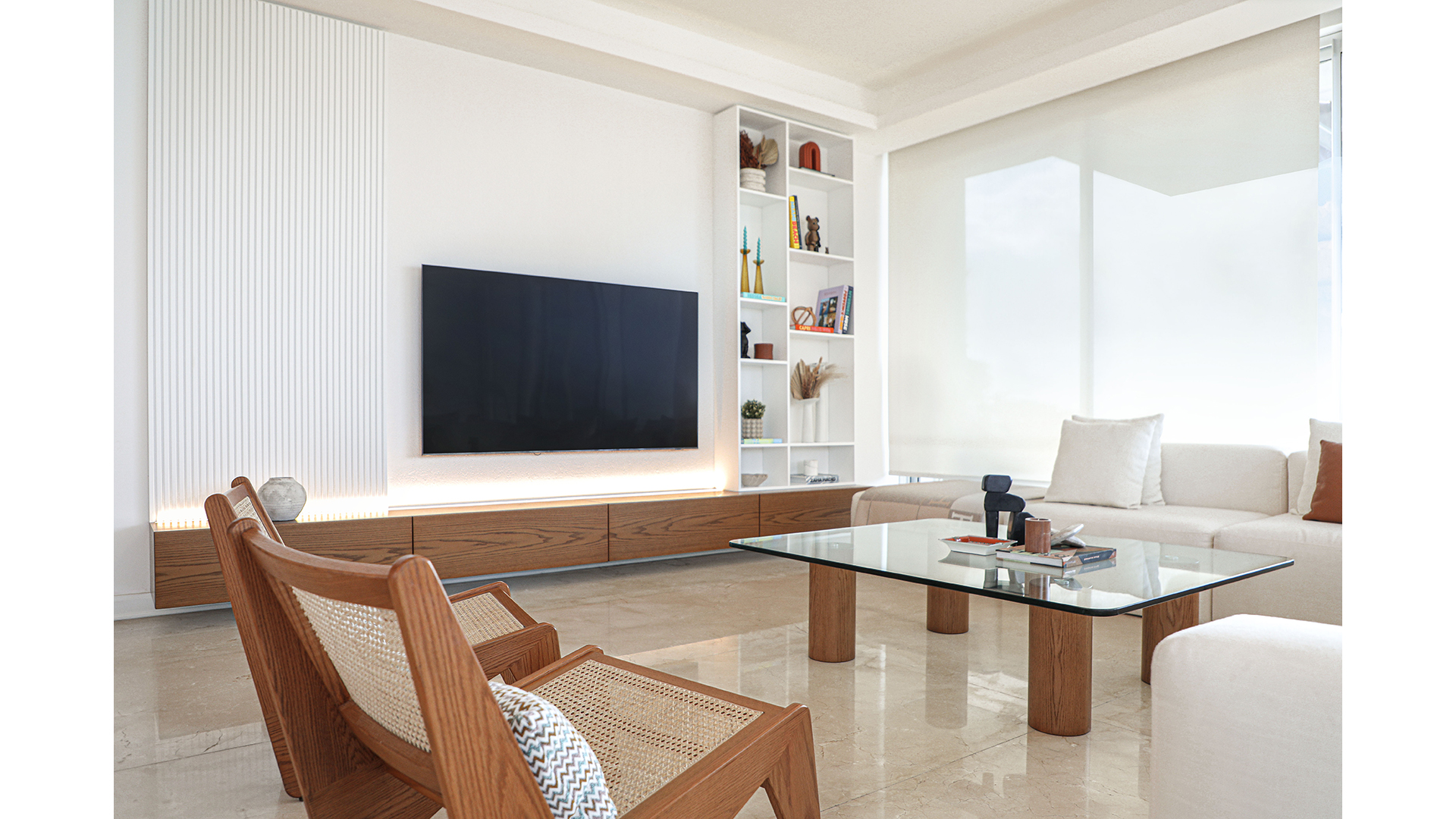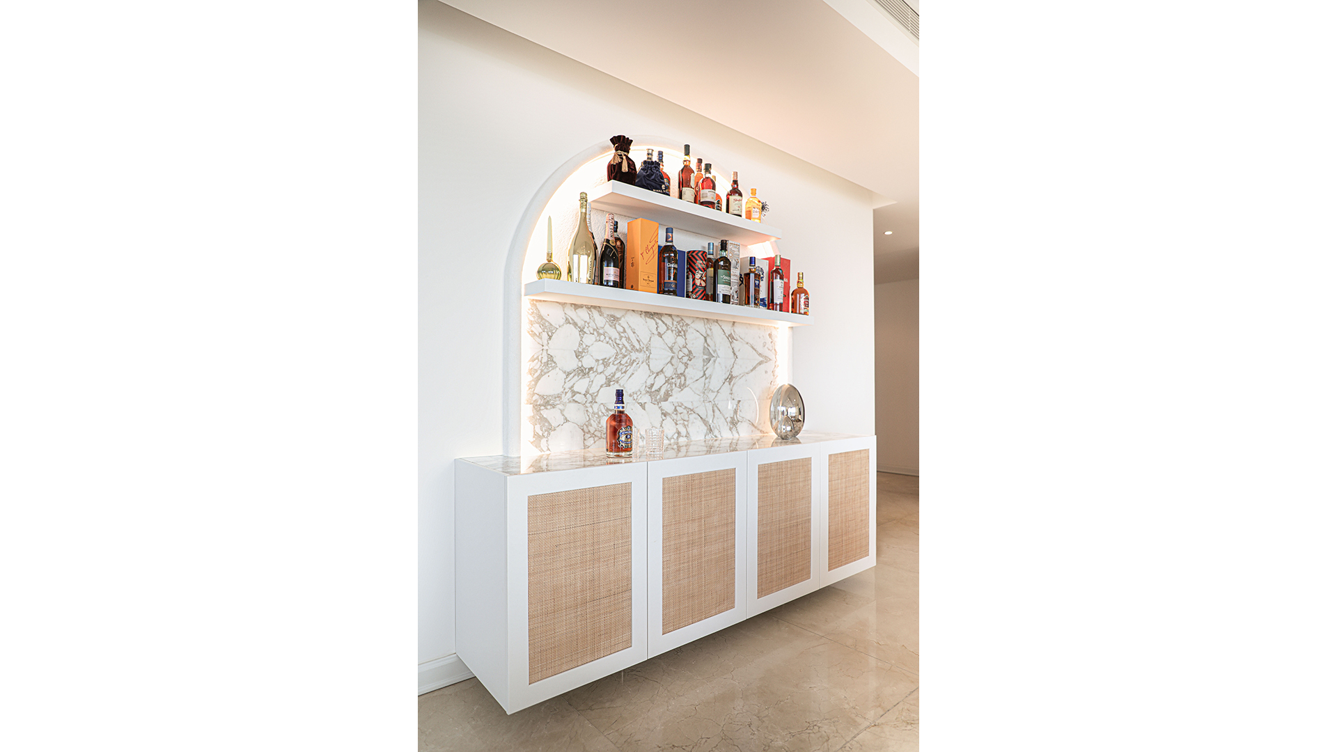 For this Residential Penthouse on the coast of Anfeh, North of Lebanon, we opted for a minimal palette that focuses on neutral earthy materials. The layering of textured paint, oak wood, rattan and travertine marble mixed with white fabrics created a relaxing balance for the user. The beautiful view of the Mediterranean Sea and the trees around it brought in the elements of vibrant colors into the room